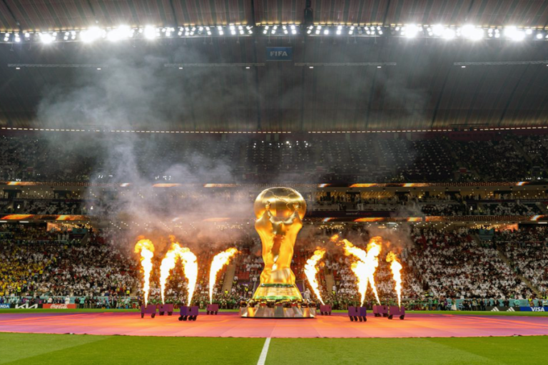 Escribe: Carlos Rodríguez Salcedo En la imagen, fuegos pirotécnicos alrededor de una maqueta gigante del Trofeo de la Copa Mundial de…