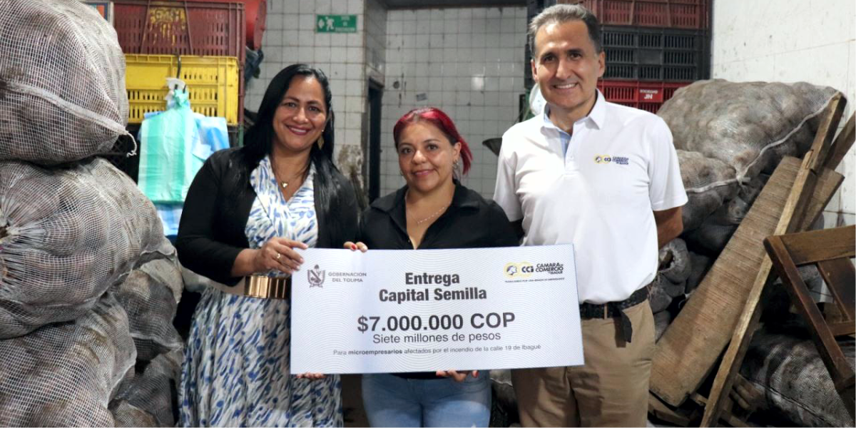 En un esfuerzo conjunto entre la Gobernación del Tolima, a través de la Secretaría de Desarrollo Económico, y la Cámara de Comercio de Ibagué, se hizo entrega de capital semilla y recursos en especie a comerciantes afectados por el incendio estructural ocurrido en la calle 19, contribuyendo así a su proceso de reconstrucción y fortalecimiento empresarial.